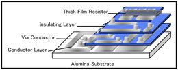 - Stability of thick film resistor and insulator layers is good